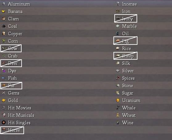 (again, those are cows, deer, furs, horses, ivory, pigs, and sheep).