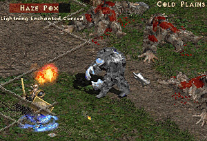 Act 1 Cursed Bigfoot - First Cold Plain boss was waiting for me at the WP. LEBs, which Haze Pox the bigfoot boss was with Cursed on top, plus the -25% resistance penalty in NM are scary monsters indeed. The setup turned out to be quite a little challenge I had created myself out of greed. I took on and activated more than I should have because I didn't want to retreat back to Blood Moor. I didn't want Flavie to touch anyone, I wanted all the drops owed to me. I knew better than to take on ¼ of Cold Plain monsters at the same time with a Cursed LEB on my tail but... |