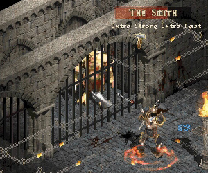 Trapping the Smith, and other monsters, is an indispensable tactic for both solo and multiplayers. There are plenty of grated rooms in these levels to take advantage of. This is quite easily done with a barb or a sorc when they can Teleport or Leap (Attack) through the bars. Be careful of the columns, they can block your Tele or Leap. With the Smith, the room from the Barrack to Jail 1 is always enclosed and barred. Try to lure him to the side where there is only a narrow gap between the bars and the wall (like the pictures above) to restrict his movement. Other classes can sometimes run fast enough into the stair room still leaving the Smith trapped outside. But there is a better way - reverse the trap. Take the Smith into the stair room and escape to Jail 1. TP to town and reenter at the OC WP. It's getting serious from here on. I was definitely hurting and a whole load of red can go in a blink if I got too bold. After switching in the ring of the Bat I can sustain LA if I don't miss. 1-2 misses, which happened too often, means my Mana ball is drained and I had to switch to Bash quickly. At this point, I almost had to use Find Potion on every kill to keep up potion usage. Lvl'd to 27 - 3 to Vit and 2 to Dex. Inner Cloister has always been a lesson in humility when quill rats represent so much danger. Taunt would see a lot more usage now. Not just here, but everywhere else when a few monsters is a problem by themselves or with a boss. The bonus with Taunt is you don't have to see and target any monster, it will just grab one within range even if it's out of sight. A couple of nice midget swords turned up: Short sword of Slaughter 2-26 - Bash16-78, and a Gladius of Quickness 8-22 - Bash 34-66, but they didn't even make it to Cats 2. The best find so far was a Salvage cleaver of Worth 20-53. So its out with the last one hander I have and put one point to Axe Mastery. Bash 61-138, LA 83-192 - Quite a difference to the 28-54 Bash with the plain bastard sword. Battle Cry was used to supplement AR deficiency. After putting on the Death's Hand and a few minor changes boosted poison resist to 37% with 3 antidote potions I was more than ready for Andy. I wasn't all that happy with her drop although it's a decent Rare 2 handed ;( military axe, the Pain Slayer, 39-88 base dmg, Howl, 2-7 Poison, 1-4 Fire, 102 AR - Including Elemental Dmg. Bash 113-240, LA 155-330. I'll eventually, probably next stop, I'll trash this or the Rare pike… A look around town for an item to imbue before leaving Act 1 found nothing worthy (a giant sword, a hunter's bow and a couple of belts) except the crown I was wearing. Fortunately, that turned out be a decent imbue which will last awhile too.- Armageddon Cowl - 57 DR, 45% LR, 18 life, Fastest Hit Recovery |