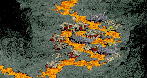 Caves: Monster AI and Layout Analysis - by Cyrene Ok, I almost always play rogues, and have always hated caves. Period. No narrow hallways, no good doorways, lots of open space, lots of nasty monsters. I would rather play hell on any diff than caves. Still, hell/caves is where the exp is, and I have been on a power gaming trip lately working on my 5@50 squad. Also, my CAT loves to hunt pw in caves. After a zillion hours of play in caves, then, I started to (belatedly) notice a few things. This post will concern itself with part 1 of monster ai, caves optical allusions, and a special attitude adjustment head-banger.