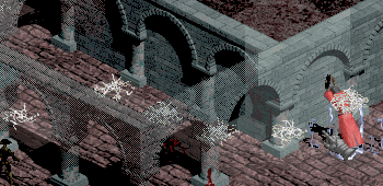 All walls are not created the equal - Unlike men CB can pass through corners and tips of some walls. This gives the caster an extra advantage when firing off CB to flood a room. In effect, it will give you one more main bolt into the room doubling the coverage and damage potential. Your CB will reach deeper into the room due to the firing angle. But the passable walls seem to exist in the Church only, more testing are needed for the Catacombs and Hell. How to identify the different walls? I have not yet found any usable patterns to identify which walls can be passed through. So far, it seems most (all) partition can be. Sorry for the long loading time. I could have spread the animations over a few pages but you will have spent more time in the end.