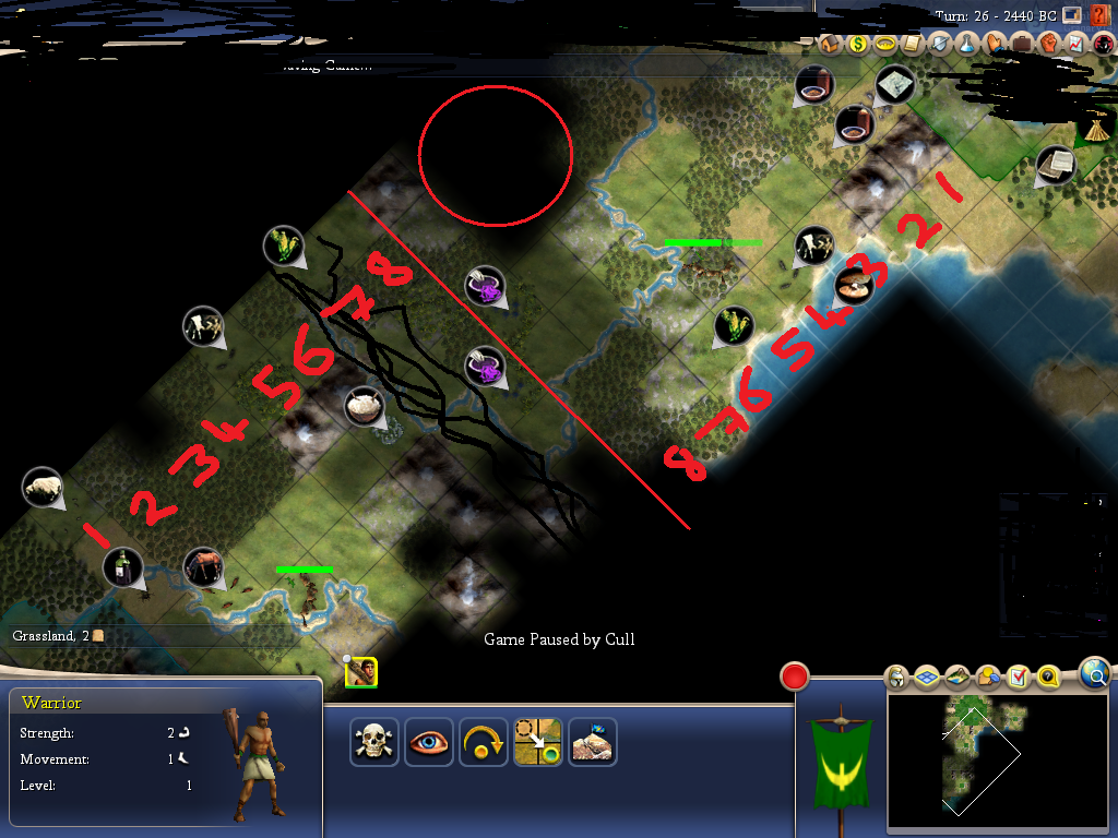 I gave him quite a bit of information here, but I am genuainly interested in creating long term a long term friend out of Kyan. There is a narrow(but long) section of land between our civs and there does not appear to be any other claims to it. If we can settle in opposite directions at least to start we could easily end up claiming quite a big chunk of the total land between us.