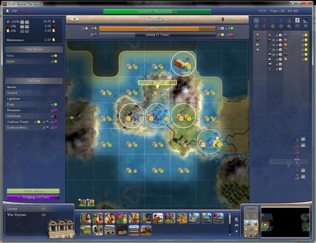 Question for the experts: Is it better to continue full research, or to slow research for a few turns to build up gold in order to upgrade units? I still have several warriors and a bunch of axes that would make very nice macemen, but I’m not sure which is better in the long run.