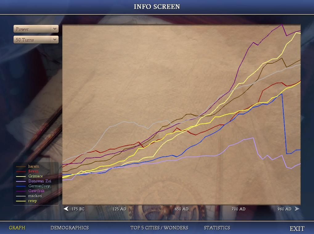 Power: We're doing really well here, just being Gawdzak and well ahead of both mackoti and haram.