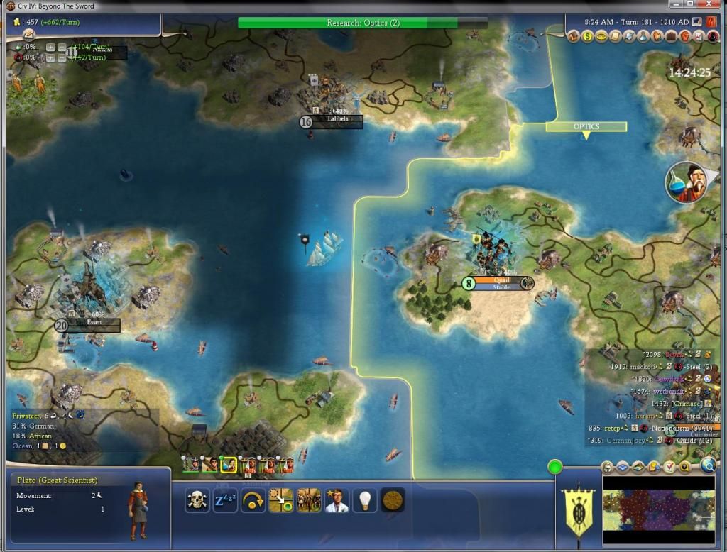 As a result of that, I changed from Rifling to Optics, and am thinking about going down the Astronomy line. Thoughts? We rely heavily on seafood, so a Privateer can do massive damage to our economy right now. Triremes are not much good against them. Of course, that privateer could screw us up well before we get Frigates, but we have to try.
