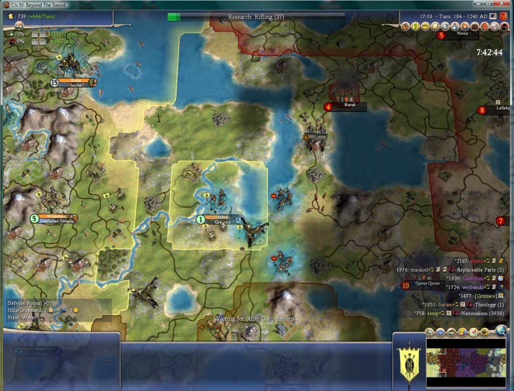 At least retep knew it was coming and whipped massively the last couple of turns. Don't know if it'll matter since he's farther behind technologically (he just recently got guilds), but at least he's putting up a fight.
