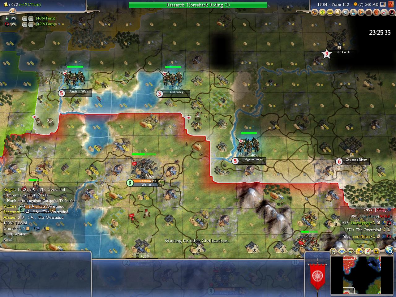 TEAM: Whipped 6 pop off three cities, grew 5 cities. Had a net power rise of 34k, so that's 35k to account for - put it down as 3 Knights plus a Cat.