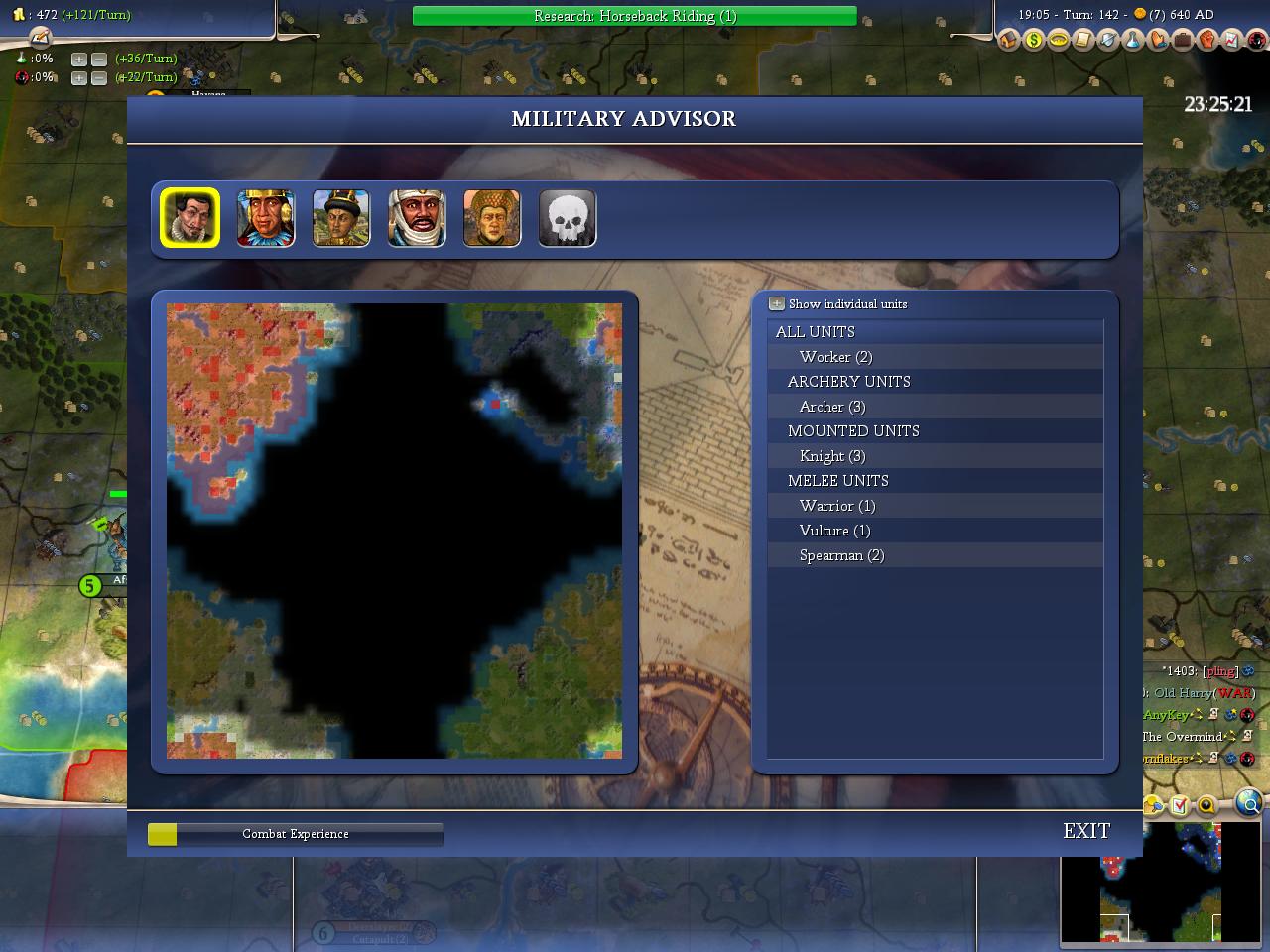 Gillette: Whipped 7 pop off 3 cities, grew 7 cities. Got Compass. Lost 30k power for the 3 Knights we killed, so gained 26k from builds. Put that down as 2 Knights & a Longbow.