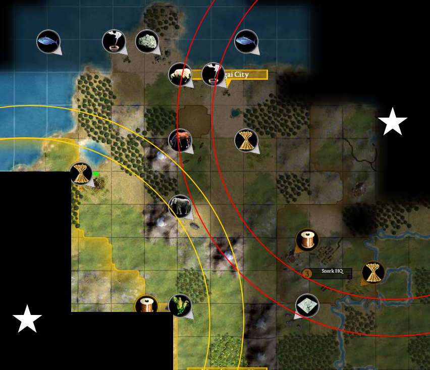 This shows the natural spheres of influence going from our capitals, and we'd be happy to use this as a basis for a border agreement. We'd really like to settle 1S of ivory, but that would stop you settling any more cities in the area, so would you like to stop threatening us and try negotiating? What are you willing to give us if we settle south and leave the site between ivory and wheat for you to settle?