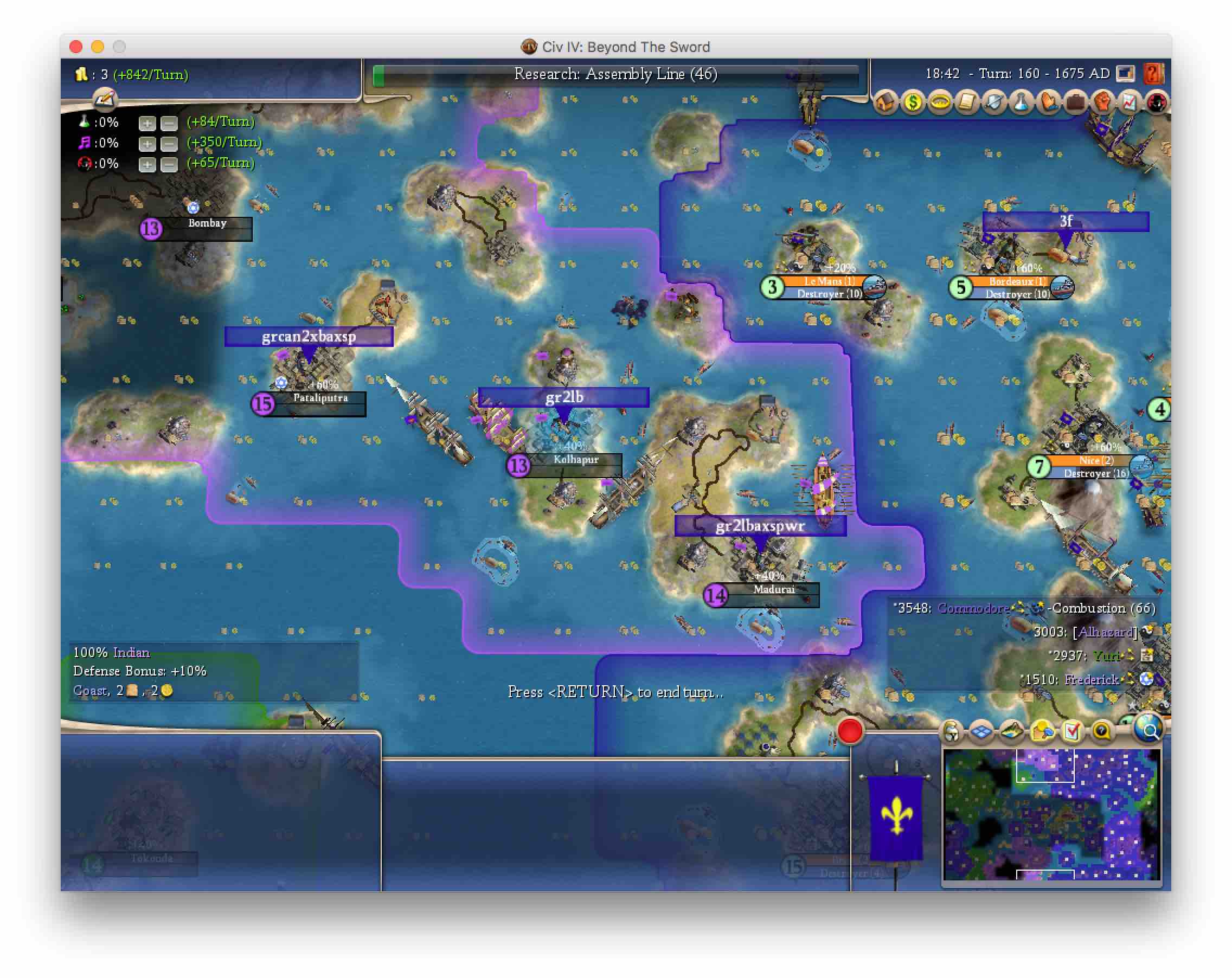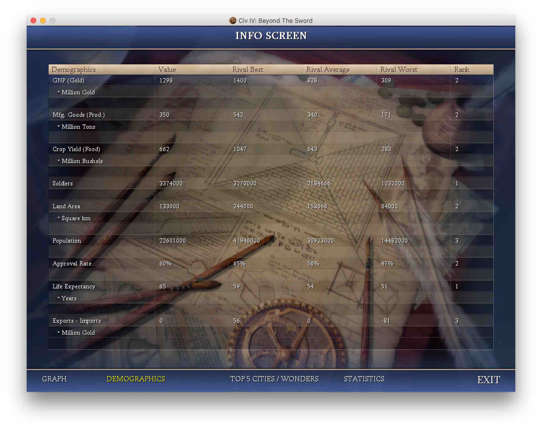 not gonna lie. Getting worried since Commodore's GNP is rising so his conquests are paying off now, while my conquest will be starting and I need 3 more settlers for city spots in AI's land and 2 marble astro cities. The good side is that even if we reach combustion at the same time, I will have much more gold to upgrade and his best ground offensive units are still grens.