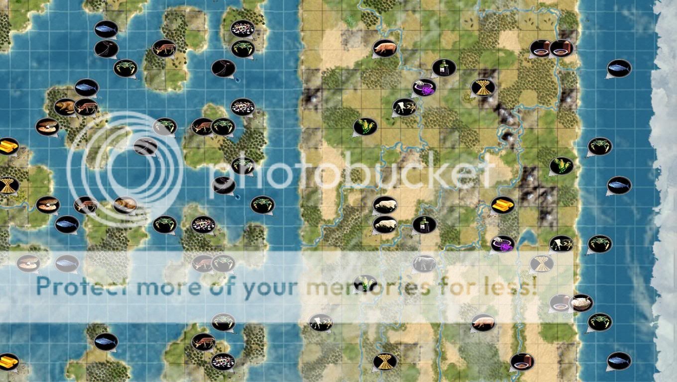 I should point out that everything except the large strip of land was handcrafted. The large strip of land was copy/pasted from several Inland Sea maps (Highly Balanced versions that were created for MP play)...and then I edited the rivers to fit, and added some resources, took some away...on the whole took me about 7 hours to make. Maybe 8, including setting the saves up. It's worth it. I think that it would be possible to code a map script to make a map like this, but I can't code...