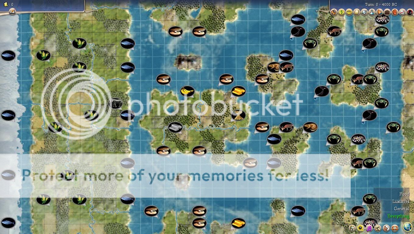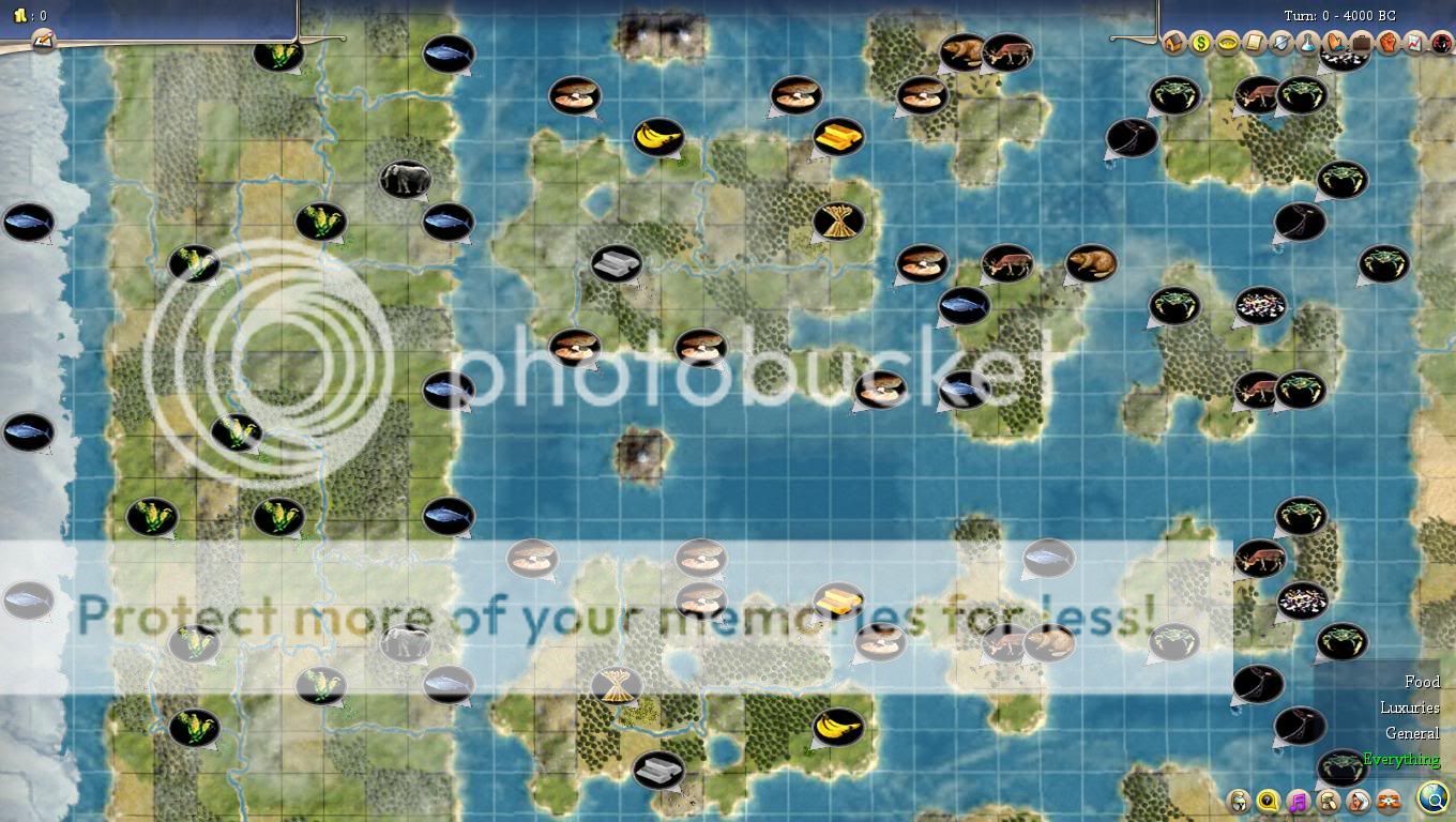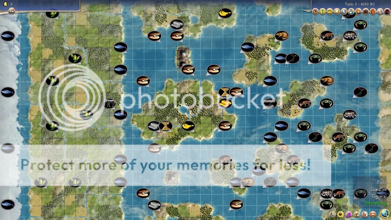 So, that explains the island directly next to each civs capital: more land, containing resources not on the ring. The resources are iron, horses, silver, gold, banana, and technically not clams. The ring itself only has fish, corn, ivory, and copper, with the horses being inside the capital radius. The islands are connected to each other, north and south, by peaks to extend the coast in a natural fashion, so one player can steal anothers' if anyone goofs off.