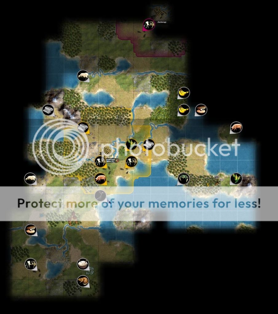 122 from the capital is a filler, but picks up the pig and grass cow from AF, can grow cottages for olde capital, grabs the whale, can work a few hills. Probably a good investment in terms of commerce growth and shouldn't need much more than just worker turns from passing workers to help it develop. It would only really be able to keep the food reources to help it grow, and then have to give them back to AF, so some tight micro is needed but it's workable.